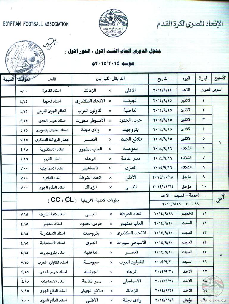 الأخباراخبار الاسماعيلى بالصور والمواعيد جدول مباريات الدورى حتى الاسبوع 17 By admin - 12 سبتمبر، 2014 0 19 FacebookTwitterPinterestWhatsApp ينشر موقع elismaily.tv جدول مباريات الاسماعيلى وباقى الفرق بالدور الاول للدورى العام من الاسبوع الاول حتى الاسبوع 17 حسبما تم نشره من جانب اتحاد الكره