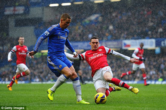 استغل فريق تشيلسي الأداء الهزيل لظهير ارسنال الأيمن بكاري سانيا ليحسم دربي لندن لصالحه بهدفين مقابل هدف في المباراة التي جمعت بينهما على ملعب ستامفورد بريدج في قمة مباريات الجولة الثالثة والعشرين من الدوري الانجليزي الممتاز يوم الأحد.