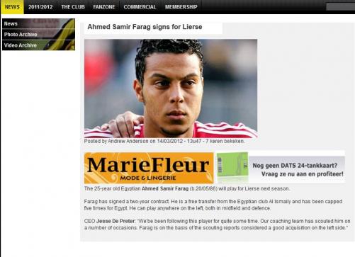 اعلن نادى ليرس البلجيكى رسميا عن توقيع احمد سمير فرج الظهير الايسر للاسماعيلى ليلعب له بدءا من الموسم المقبل وتم الاعلان عن ذلك فى الموقع الرسمى للنادى البلجيكى وجدير بالذكر ان اللاعب قام بالتوقيع لشركه وادى دجله المالكه للنادى البلجيكى للعب بصفوف وادى دجله الموسم الحالى على ان ينتقل لنادى ليرس مطلع الموسم المقبل ونظرا لالغاء الموسم الكروى فى مصر تم اتمام الصفقه للنادى البلجيكى ليلعب له بدءا من الموسم المقبل .