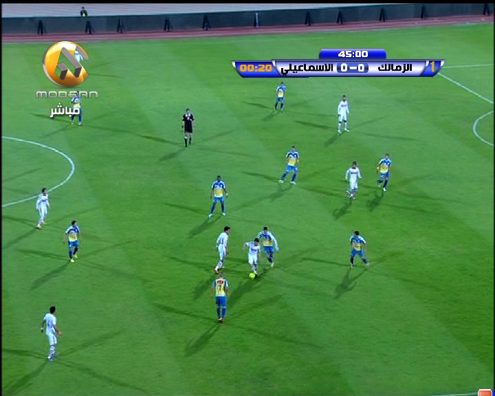 انتهى الشوط الاول فى مباراه الاسماعيلى والزمالك بتعادل سلبى بين الفريقين فى شوط سيطر فيه الزمالك سيطره شبه كامله وسط استسلام من لاعبى الاسماعيلى بسبب الخطه والتشكيل السيئين للكابتن صبرى المنياوى المدير الفنى للاسماعيلى .