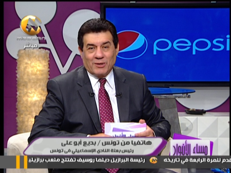 ظهر العميد بديع ابو على عضو مجلس اداره الاسماعيلى على شاشه مودرن سبورت وتحدث بوضوح حول رحله تونس ومباراه البنزرتى اليوم الاحد وكانت مكالمته مع مدحت شلبى فى مساء الانوار وتحدث الكابتن عصام عبد العال عن خطوره الانديه التونسيه فى استغلال الكرات الثابته وطلب من ابو على توصيل المعلومه للجهاز الفنى والعديد من الاشياء الاخرى
