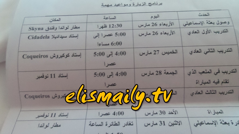 صوره : جدول مواعيد تدريبات وتحركات الاسماعيلى فى انجولا