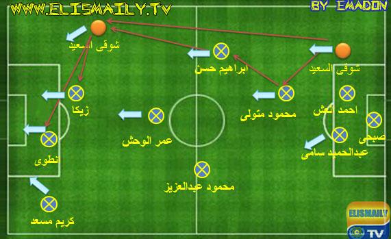ودا الشكل التوضيحى لحركة الاعب شوقى السعيد داخل الفريق وتحوله من الدفاع للهجوم