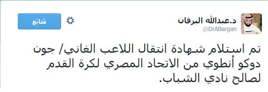 البطاقة الدولية للغانى انتوى تصل للشباب السعودى والاسماعيلى ينتظر القسط الاول من الصفقة
